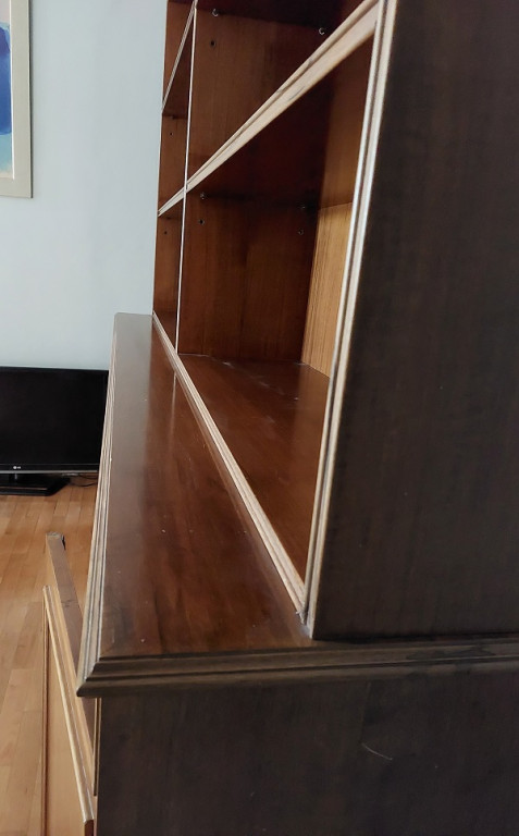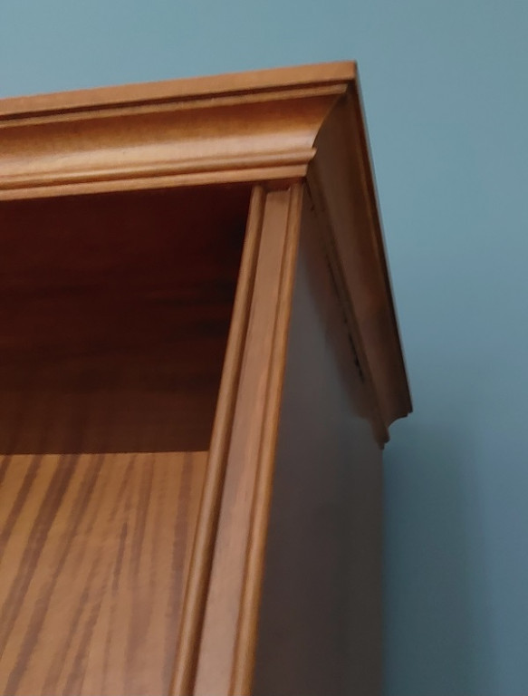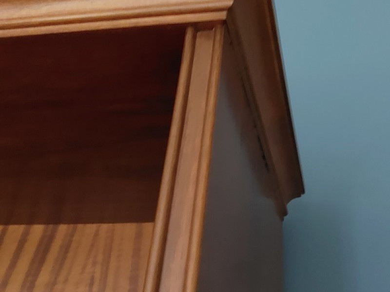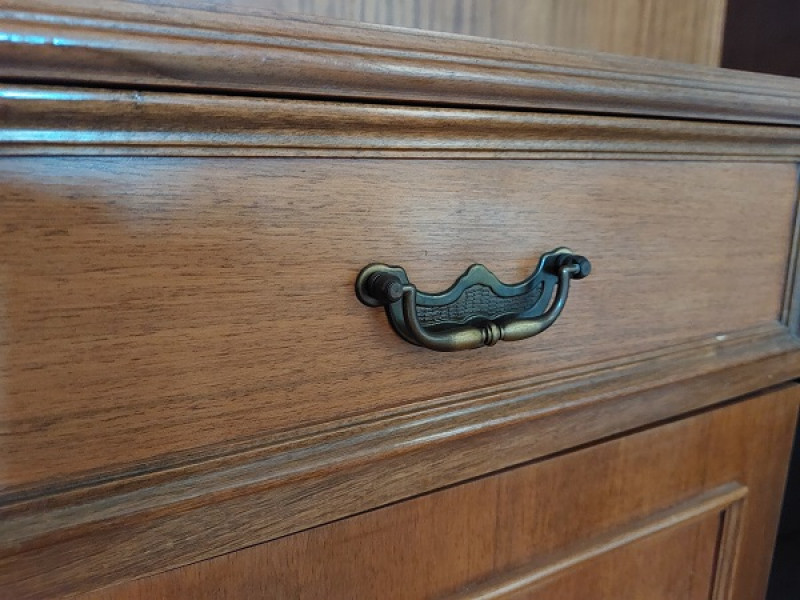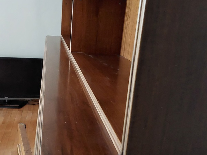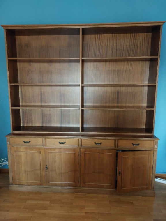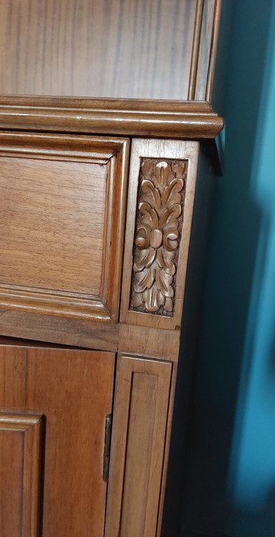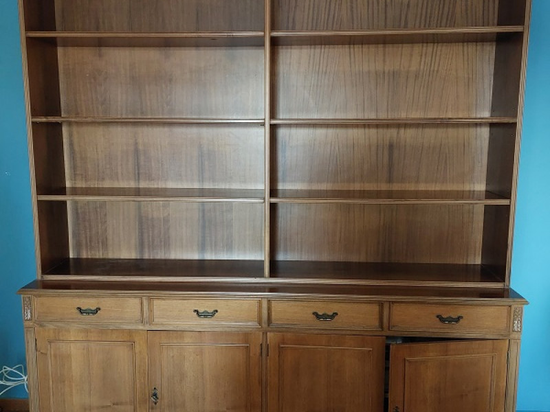 Δίφυλλη βιβλιοθήκη, με σκαλίσματα, όλη στο χέρι. Μπορεί να χωριστεί σε 2 μέρη, με το πάνω μέρος να χρησιμοποιηθεί ως εντοιχισμένη π.χ βιβλιοθήκη και το κάτω μέρος ως μπουφές.